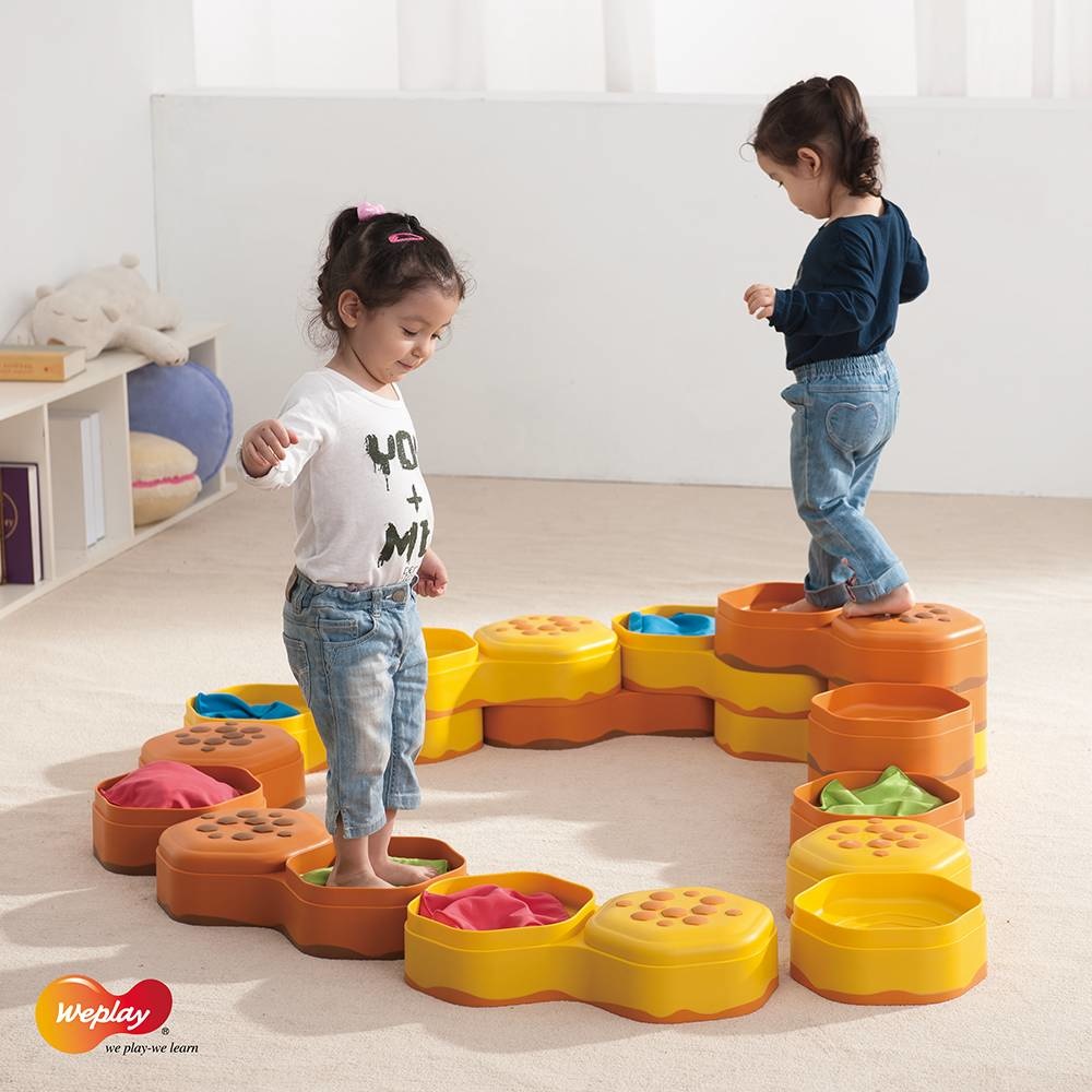 Gebruik de eigen creativiteit om eigen routes te creëren. Het ontwerp van het oppervlak creëert verschillende hoogtes voor het versterken van de bewegingen, balans en coördinatie van kinderen.