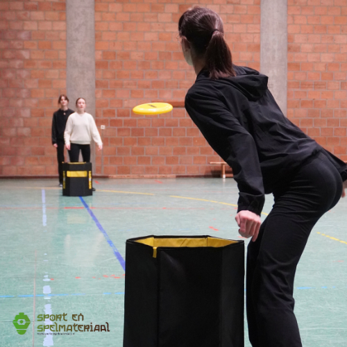 In teams van twee probeer je als eerste 21 punten te scoren door een vliegende schijf op het doel te richten. Teamwork, precisie en snelheid zijn de sleutel tot succes!