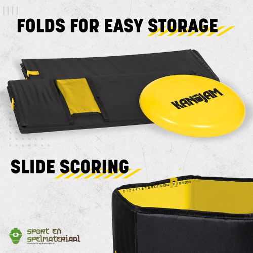 Opvouwbare KanJam set – actief werpspel voor binnen en buiten, inclusief doelen, schijf en draagtas. Leuk voor jong en oud!
