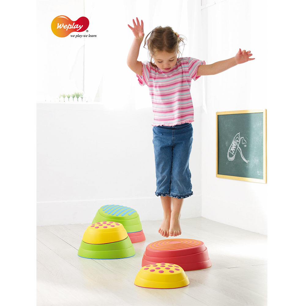 Spring van steen naar steen ... bewegingscoördinatie, stabiliteit, concentratie, spieropbouw, behendigheid, balans, dit alles kan met deze set worden getraind.