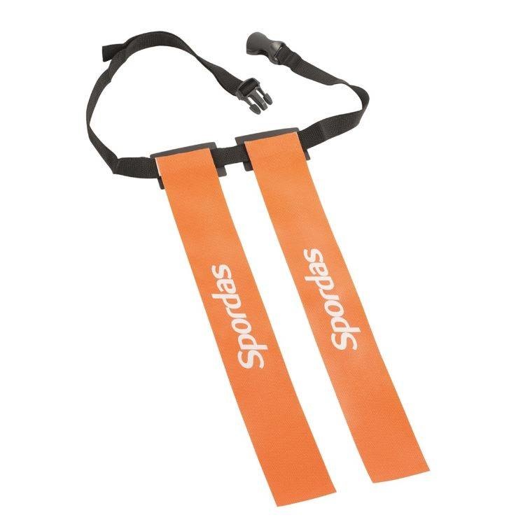 Deze vlaggenriemen zijn voorzien van twee nylonvlaggen die zijn bevestigd aan twee onderdelen die langs de lengte van de riem kunnen worden geschoven.