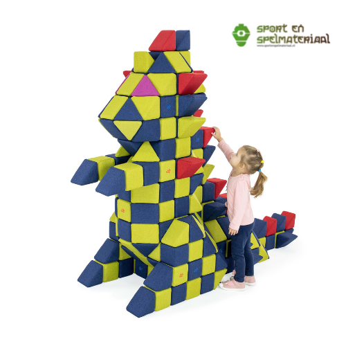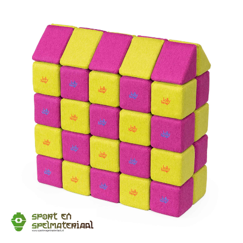 Deze set zachte textiele magnetische Bouwstenen/blokken van het merk "JOLLYHEAP®" zijn voor kleine en grotere kinderen ideaal om in de klas, aula, wachtruimte, gymzaal of andere ruimte een geheel eigen bouwwerk te creëren! Superleuk en erg uitdagend.
